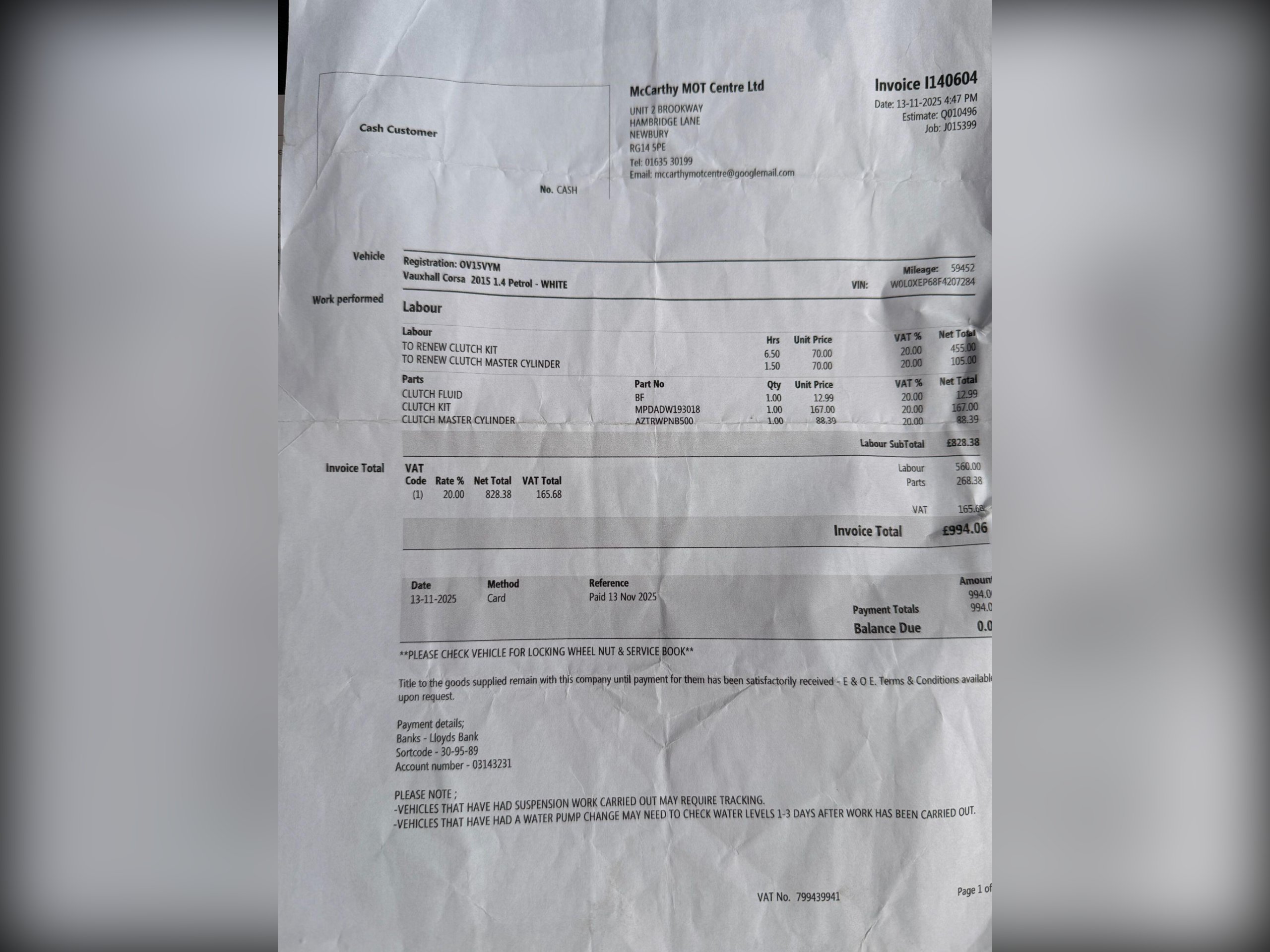 Vauxhall Corsa Additional Information