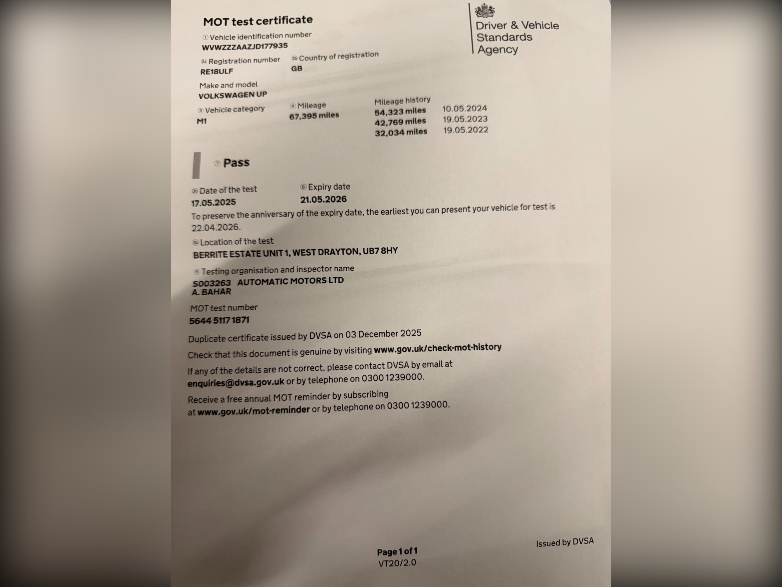 Volkswagen UP! Additional Information